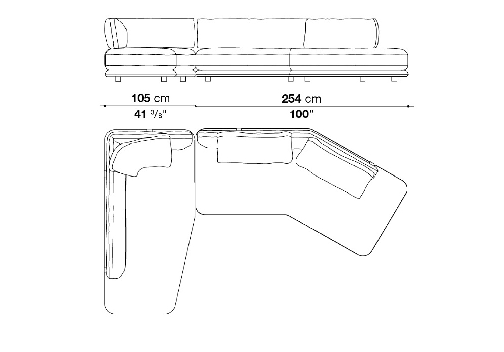 Cocùn firmato da Antonio Citterio per B&B Italia è un divano con bordo inferiore in alluminio verniciato cromato nero e rivestimento in tessuto. Tre cuscini schienali 90 x 60 cm inclusi.