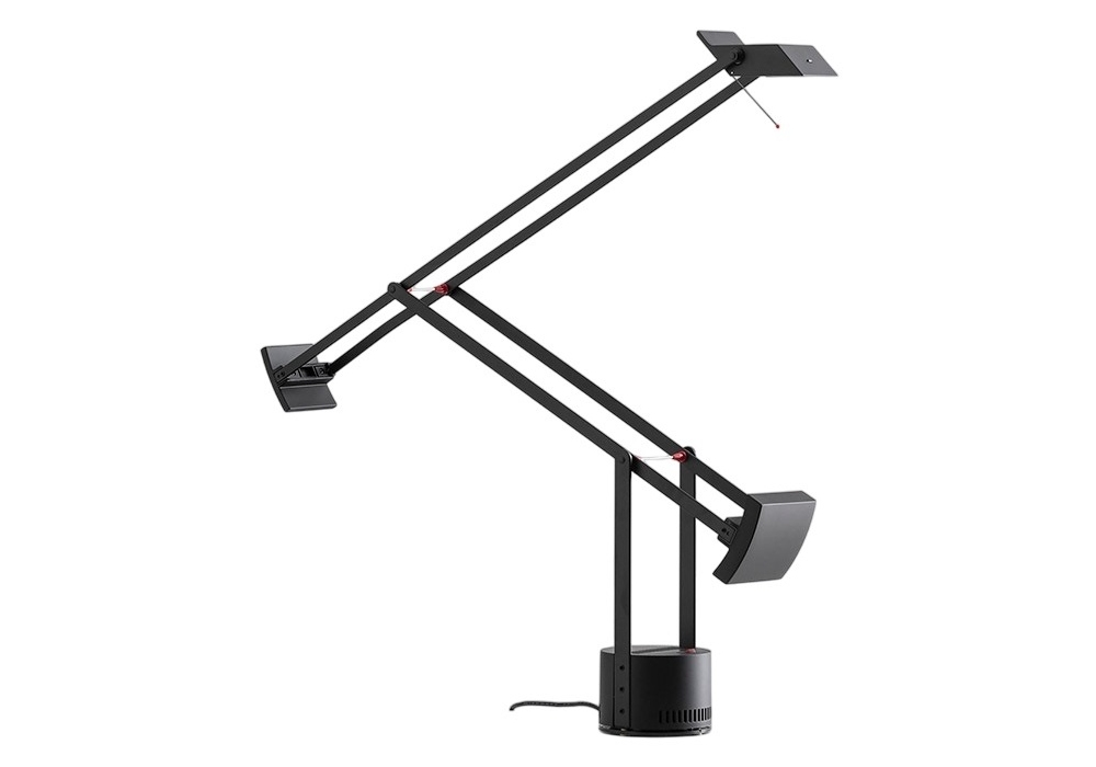 Tizio firmata da Richard Sapper per Artemide è una lampada da tavolo in policarbonato verniciato. Testa e bracci orientabili bilanciati da contrappesi.