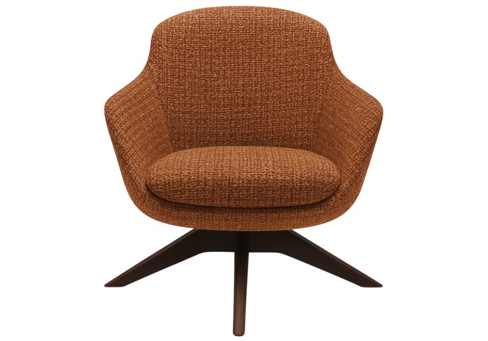 Ghirla è una poltrona firmata da Nicoline. Struttura in legno e multistrato. Imbottitura in poliuretano espanso a freddo. Rivestimento in tessuto. Disponibile con base girevole in legno, finitura wengè.
