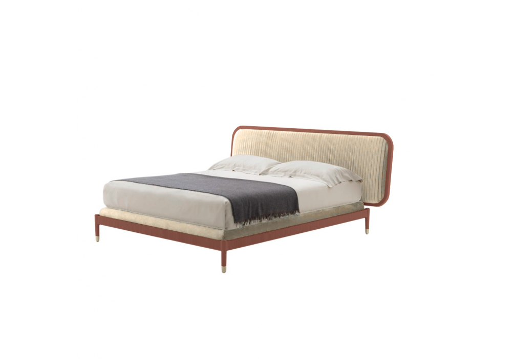 Amante Plissé firmato da Cristina Celestino per Pianca è un letto con giroletto laccato e testiera rivestita plissé in tessuto.