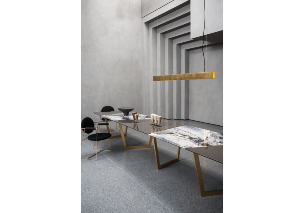 Blade firmata da Baxter P. per Baxter è una lampada a sospensione LED con struttura in ottone anticato.