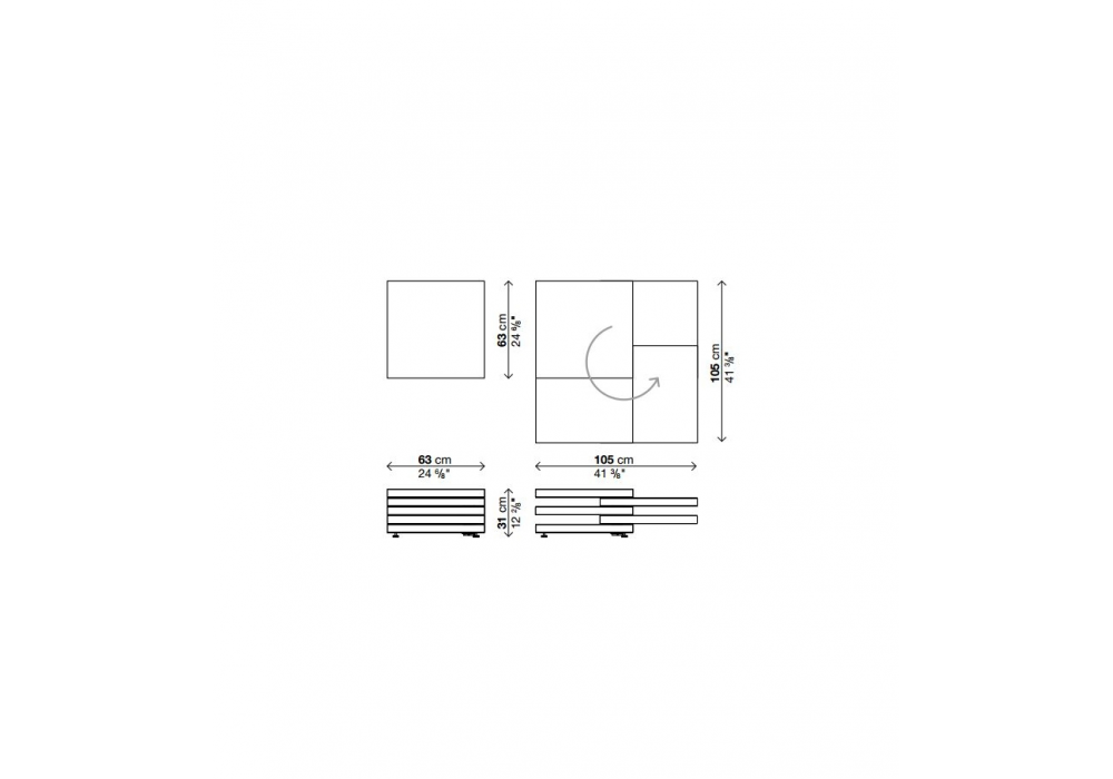 | Dimensioni | 63 x 63 x H 31 cm / 105 x 105 x H 31 cm |
