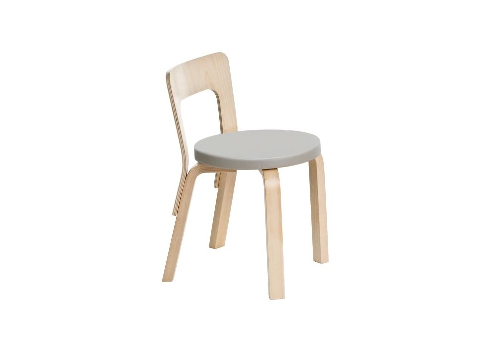Children's Chair N65 firmata da Alvar Aalto per Artek è una sedia realizzata con rivestimento del sedile in tessuto o pelle. Struttura in massello di betulla. Disponibile in diverse finiture.