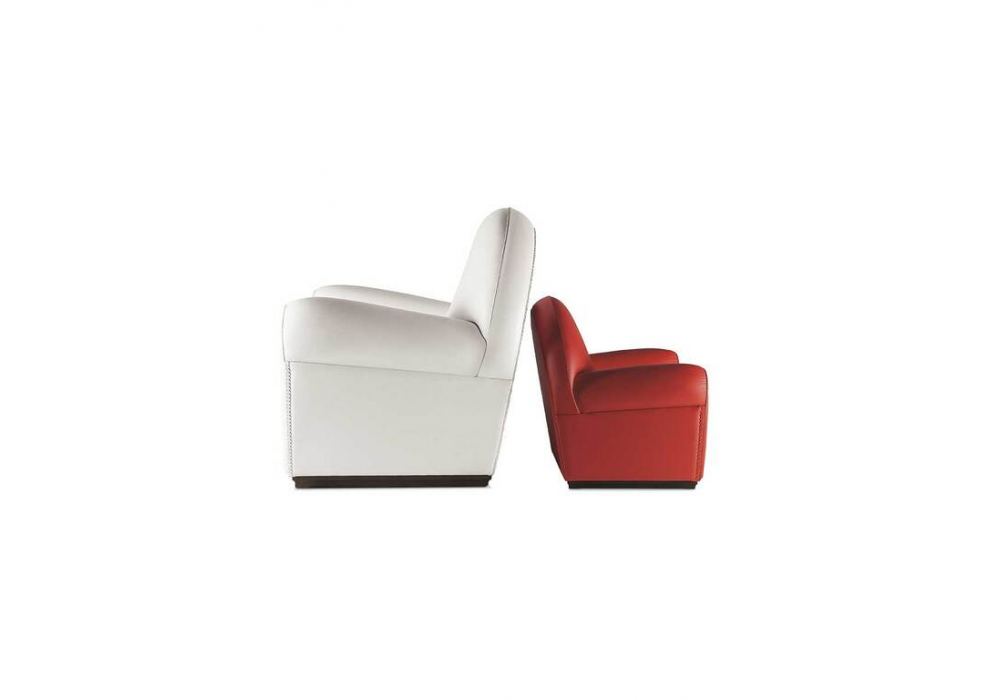 Baby Vanity Fair firmata da Renzo Frau per Poltrona Frau è una poltroncina realizzata con struttura portante in multistrato di pioppo e betulla, imbottitura braccioli e schienale in poliuretano espanso ottenuto da stampo e seduta in poliuretano espanso. Cuscino seduta in piuma d’oca e Rivestimento in Pelle Frau®.
