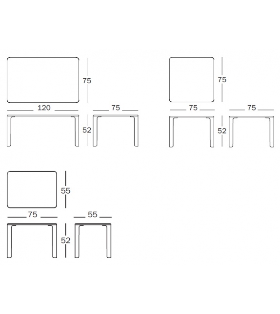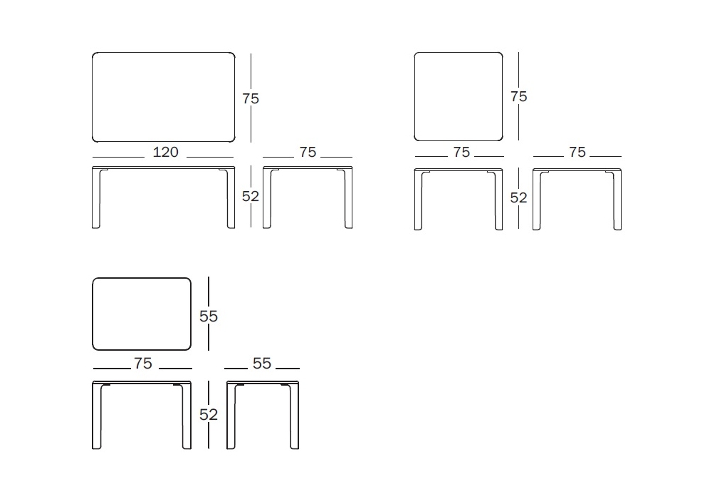 | Dimensioni | 75 x 55 x H 52 cm; 75 x 75 x H 52 cm; 120 x 75 x H 52 cm |