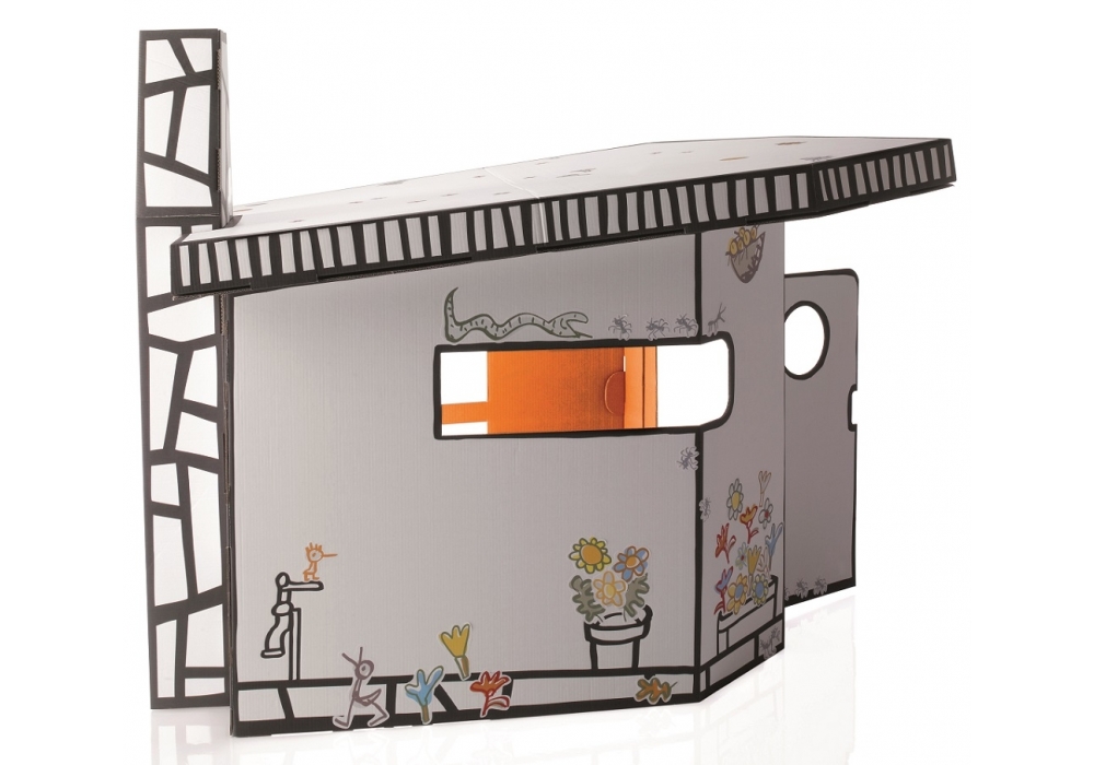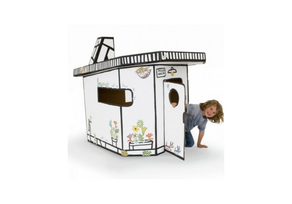 Villa Julia firmata da Javier Mariscal per Magis Me Too è una casetta in cartone, completa di adesivi per la personalizzazione.