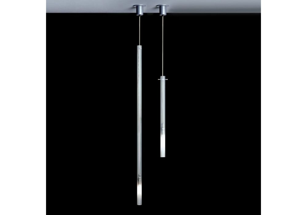 Canna Nuda firmata da Piero Castiglioni e Roberto Menghi per Nemo è una lampada a sospensione con struttura portante in metallo satinato e nickelato. Il diffusore è di forma cilindrica in vetro sabbiato ed adotta una sorgente luminosa di tipo alogeno o LED dimmerabile. Canna Nuda è disponibile in differenti dimensioni e finiture