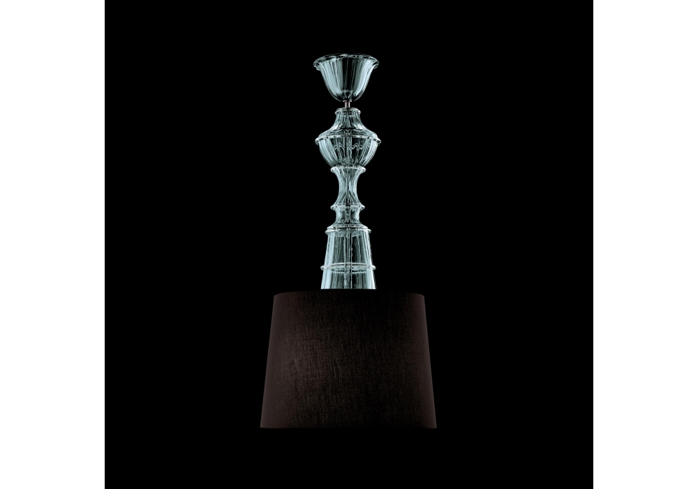 Samurai è una lampada a sospensione firmata da Angelo Barovier per Barovier & Toso, con struttura e parti in metallo nelle finiture ottone o cromo nero. Il corpo lampada è rivestito in cristallo veneziano disponibile in diverse finiture mentre il paralume in tessuto si puo scegliere tra nero, bianco o nero con interno oro.