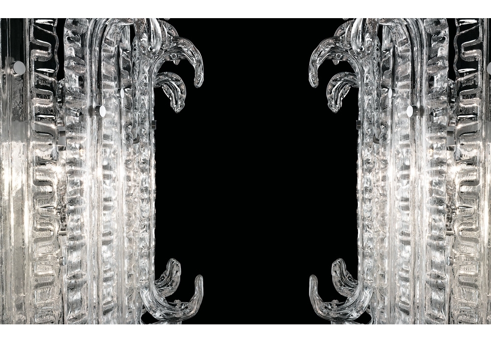 New Felci firmata e prodotta da Barovier & Toso è una lampada a sospensione con struttura portante in metallo adornata da molteplici applicazioni in cristallo veneziano trasparente. Le sorgenti luminose adottate sono di tipo LED o alogene dimmerabili. New Felci è disponibile in differenti modelli e finiture.