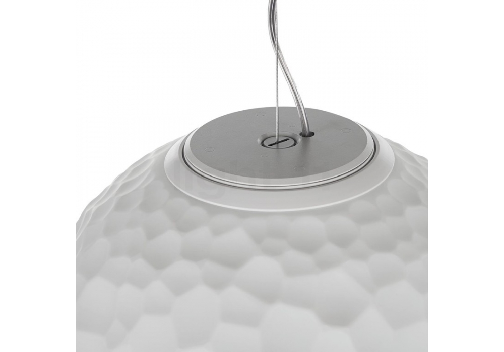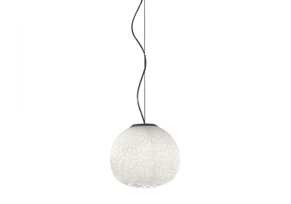 Meteorite firmata da Pio & Tito Toso per Artemide è una lampada a sospensione struttura portante in tecnopolimero e acciaio. Il diffusore è di forma sferica in vetro soffiato ed alloggia una sorgente luminosa di tipo LED dimmerabile. Meteorite è disponibile in differenti dimensioni.