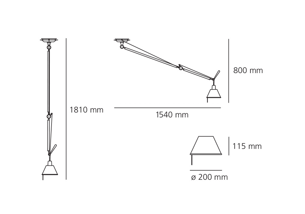 Tolomeo Decentrata è una lampada a sospensione con diffusore in alluminio firmata da Michele De Lucchi & Giancarlo Fassina per Artemide. Struttura a bracci mobili in alluminio lucidato con snodi in alluminio brillantato. La sorgente luminosa è di tipo LED dimmerabile.