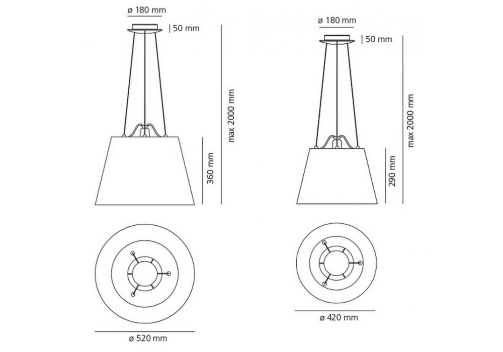 | Diffusore | Ø 42 x H 29 cm; Ø 52 x H 36 cm. |