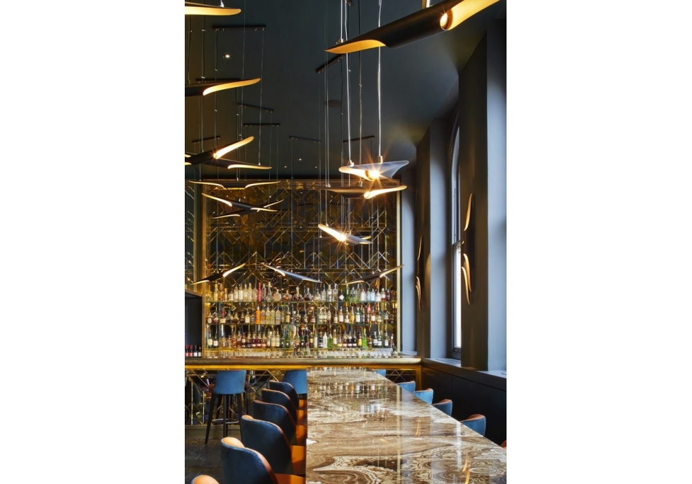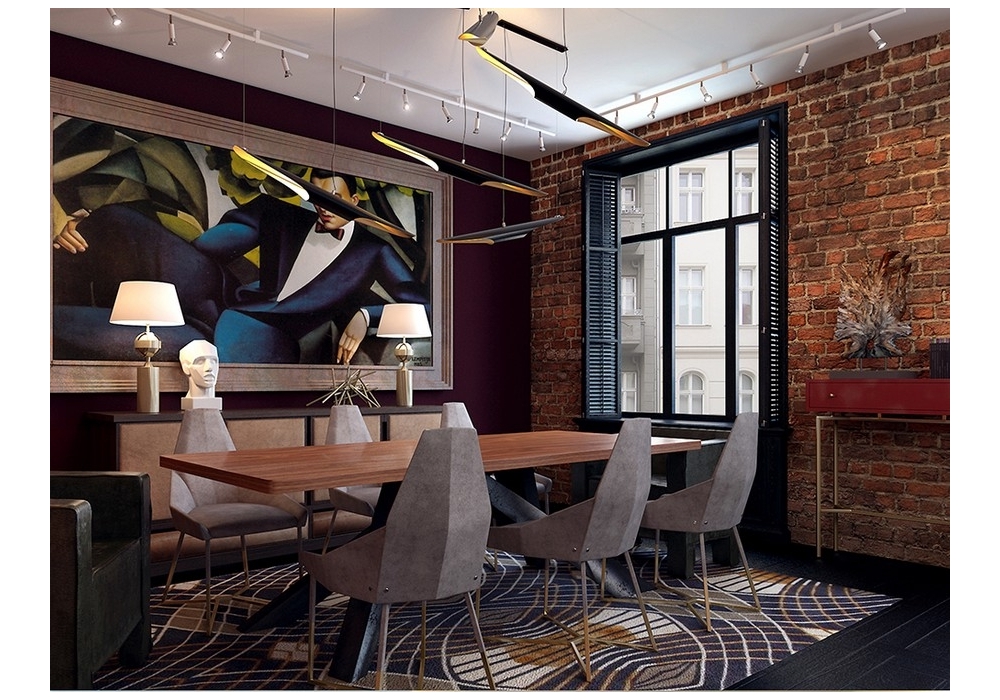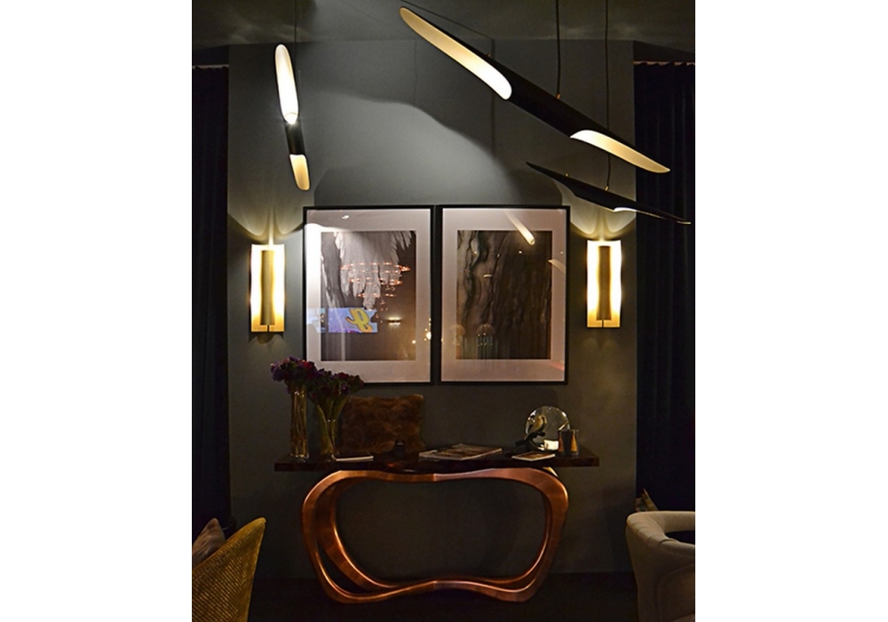 Coltrane firmata da DelightFULL è una lampada a sospensione realizzata a mano in acciaio. È dotato di un cavo in acciaio e di un baldacchino nella parte superiore, mentre in basso il tubo è realizzato in acciaio inossidabile, con una finitura a polvere d'oro. Anche il paralume è in acciaio, ma è laccato oro opaco all'esterno e vernice a polvere dorata all'interno.