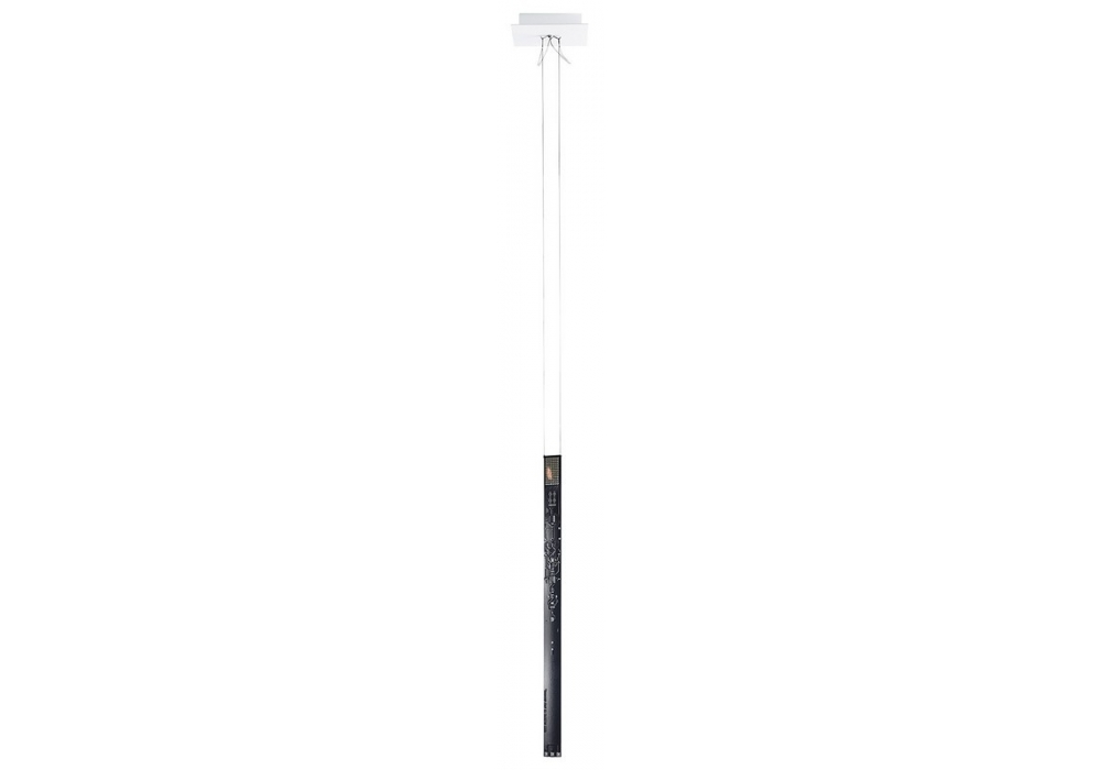 One New Flame firmata da Moritz Waldemeyer per Ingo Maurer è una lampada a sospensione disponibile in 3 finiture. La struttura è composta da un circuito stampato, sul quale sembra muoversi la fiamma di una candela, metallo e materiale sintetico.