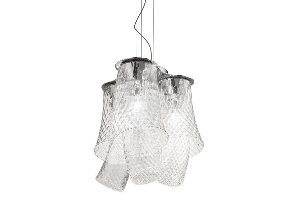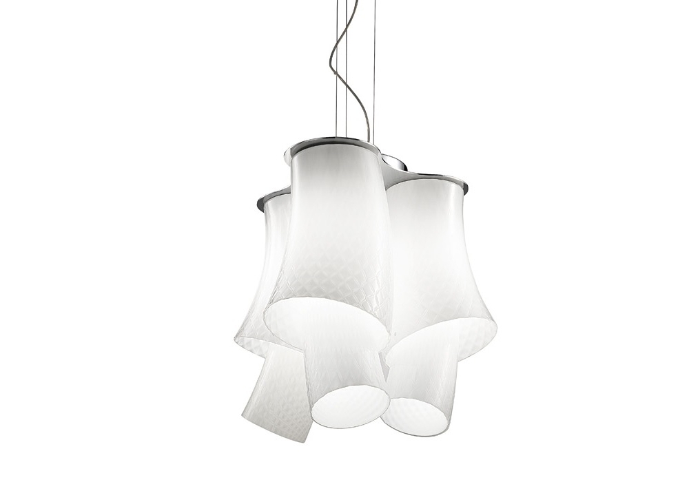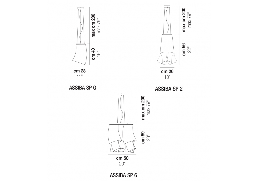 Assiba firmata da Mauro Olivieri per Vistosi è una lampada a sospensione con struttura portante in metallo cromato. Il diffusore è in vetro e scherma una sorgente luminosa con innesto E27 di tipo LED o alogena dimmerabile. Assiba è disponibile in differenti modelli e finiture di diffusore.
