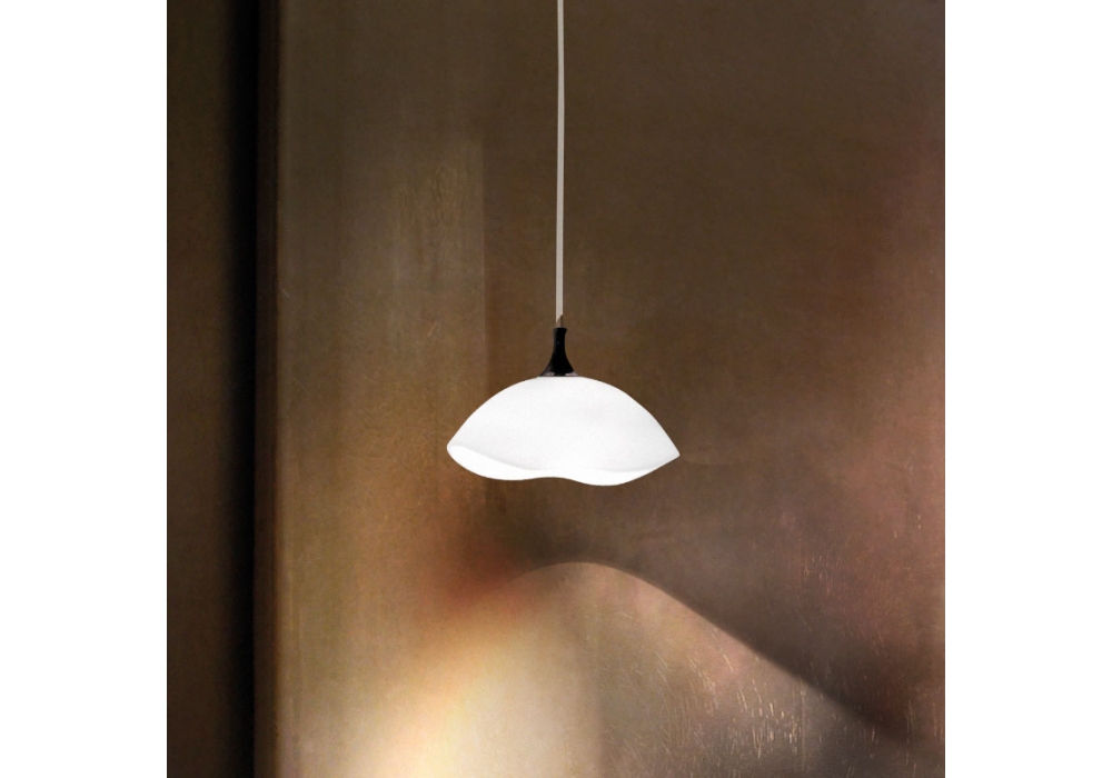 Ninfea firmata da Oriano Favaretto per Vistosi è una lampada a sospensione con struttura portante in metallo cromato. Il diffusore è in vetro di murano bianco e scherma una sorgenta luminosa con innesto G9 o E27 di tipo LED o alogena dimmerabile. Ninfea è disponibile in differenti modelli.