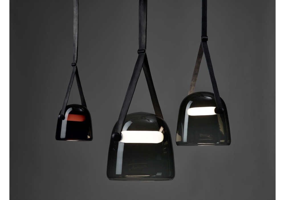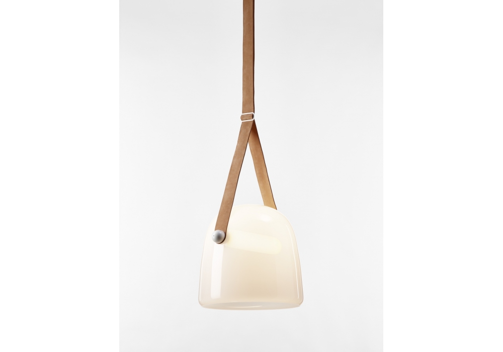 Mona Medium firmata da Lucie Koldová per Brokis è una lampada a sospensione con diffusore in vetro soffiato sostenuto da una cinghia in cuoio. La sorgente luminosa adottata è di tipo LED module dimmerabile in differenti versioni. Mona Medium è disponibile in diverse finiture.