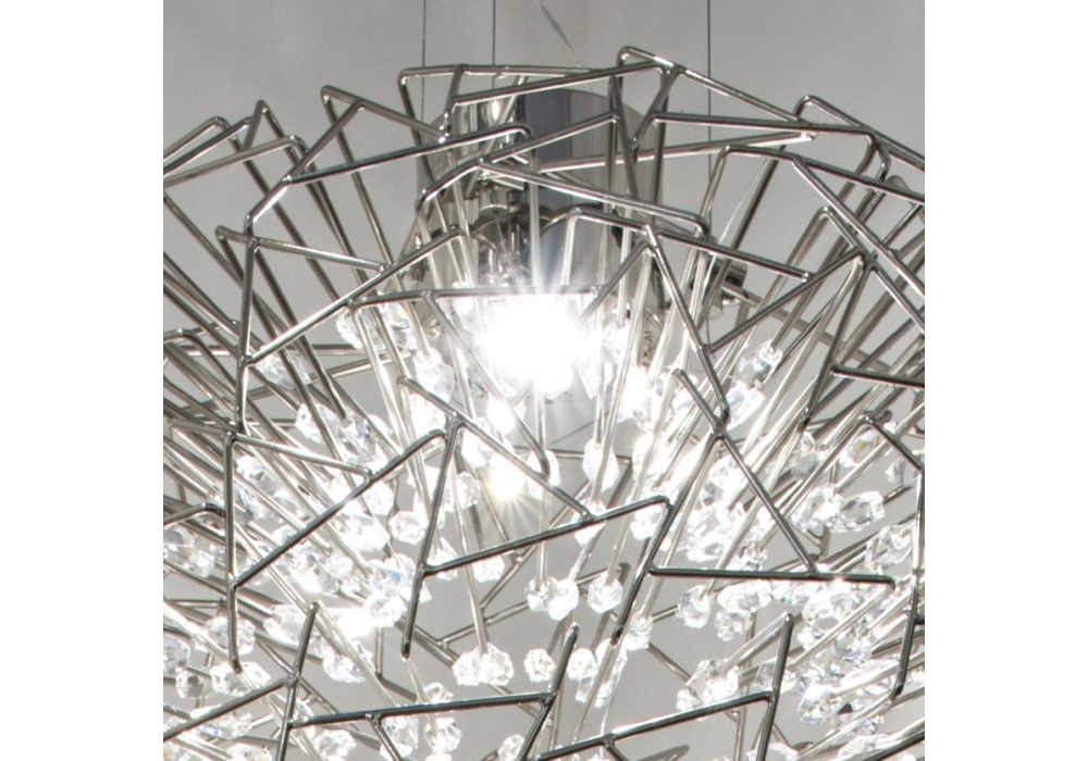 Core firmata da Christian Lava per Terzani è una lampada a sospensione interamente strutturata da metallo intrecciato e cristallo. La sorgente luminosa adottata è di tipo LED dimmerabile in differenti gradazioni di luce. Core è disponibile in diverse finiture e modelli.