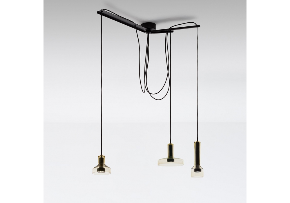 Stablight firmato da Arik Levy per Artemide è una lampada a sospensione con struttura portante in alluminio verniciato in nerom e tre diffusori di forma circolare in vetro soffiato. E' possibile selezionare la versione con un colore diverso per ognuno dei tre diffusori. La sorgente luminosa adottata è di tipo LED con sistema di dimmerabilità del flusso luminoso. Stablight è disponibile in differenti finiture.