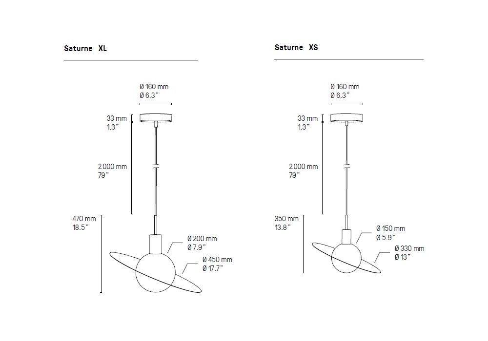 Saturne firmata da Hervé Langlais per CVL Luminaires è una lampada a sospensione dal design unico. La palla del diffusore in vetro è circondata da un anello in ottone. Può essere raggruppata in più pezzi per ricreare una luminosa "costellazione" di lampade. E' disponibile anche in diversi modelli e finiture. Su richiesta, è possibile raggruppare più sospensioni in un unico rosone, rettangolare o circolare.