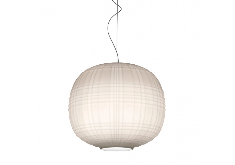 Tartan firmata da Ludovica & Roberto Palomba per Foscarini è una lampada a sospensione di forma circolare interamente realizzata in vetro soffiato acidato con superficie con decorazioni a rilievo. La sorgente luminosa adottata è di tipo LED. Tartan è disponibile in differenti versioni.