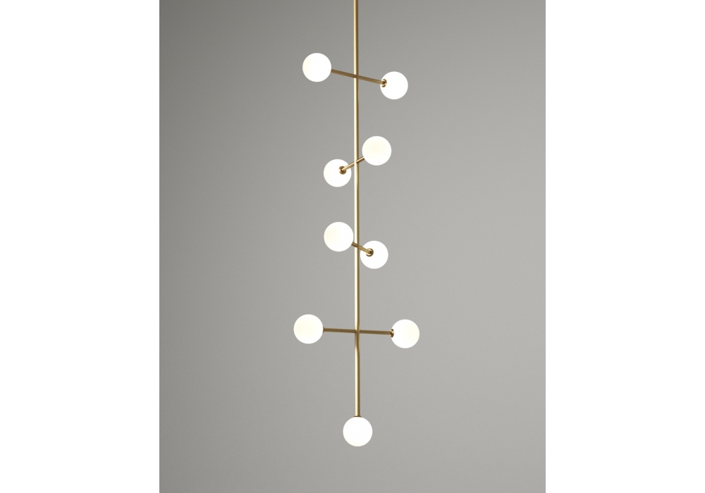 Epic Two firmata da Atelier Areti è una lampada a sospensione caratterizzata da una struttura in metallo verniciato o bronzo, paralumi in vetro a forma di sfera.