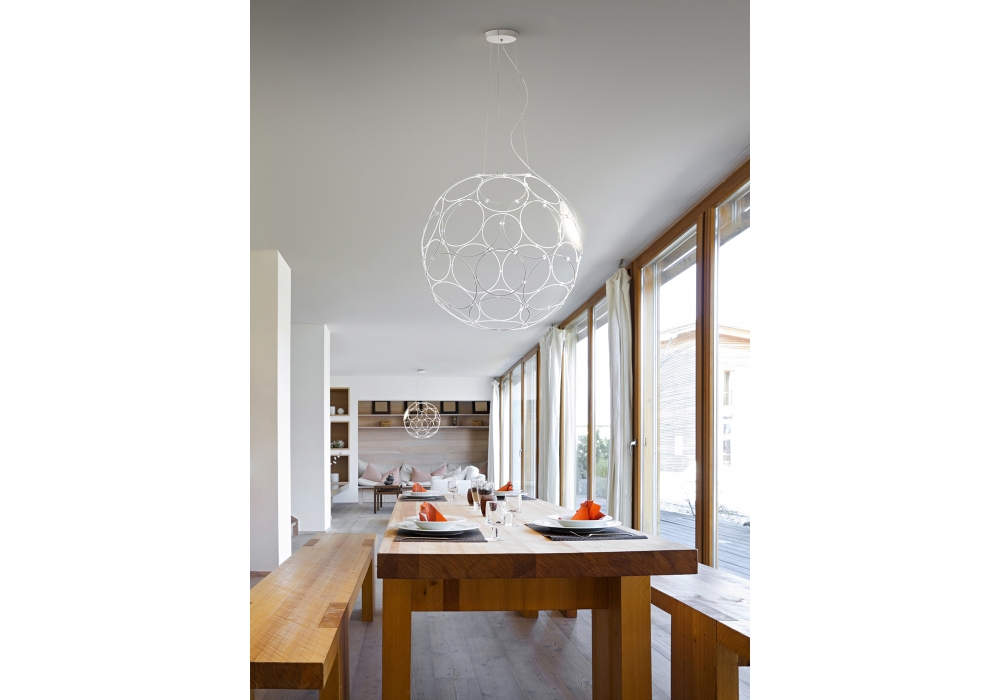 Giro F30 firmata da Formfiord per Fabbian è una bellissima lampada a sospensione disponibile in 2 diverse finiture: bianco lucido o grigio antracite. L’obiettivo dei designer era quello di creare una lampada abbastanza grande, ma, allo stesso tempo, aperta e leggera, ariosa. La soluzione è stata trovata nella semplicità e nella delicatezza dei sottili anelli d’acciaio e della loro qualità grafica, caratteristiche che hanno attirato l’attenzione degli autori, tanto da farli diventare parte essenziale del progetto, dando vita a sospensioni dallo stile scultoreo, ricercato e leggero. E' disponibile anche in 2 dimensioni e sorgenti di luce. Indice di protezione IP 20.