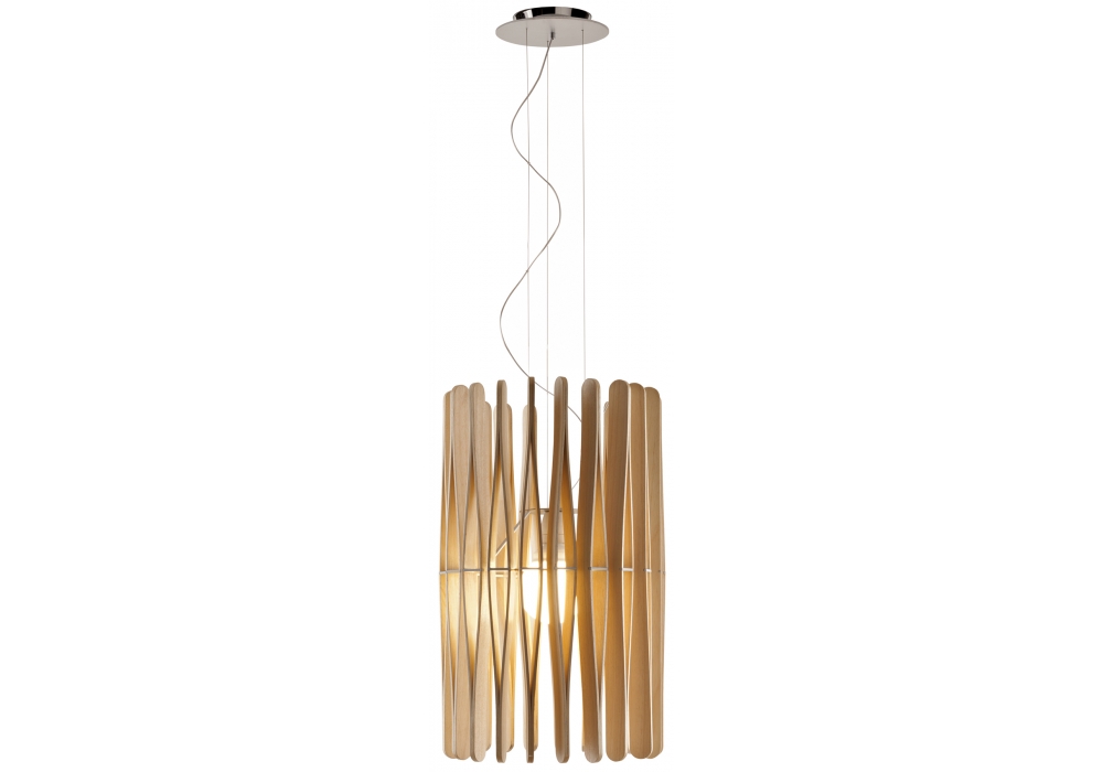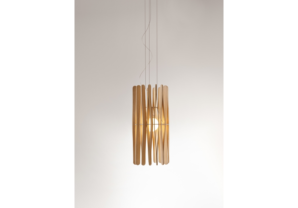 Stick F23 firmata da Matali Crasset per Fabbian è una lampada a sospensione dal design innovativo. La diffusione della luce è affidata ad un'intelaiatura ornata di listelli in legno Ayous. Disponibile anche in 5 modelli con diverse sorgenti luminose. Indice di protezione IP 20.