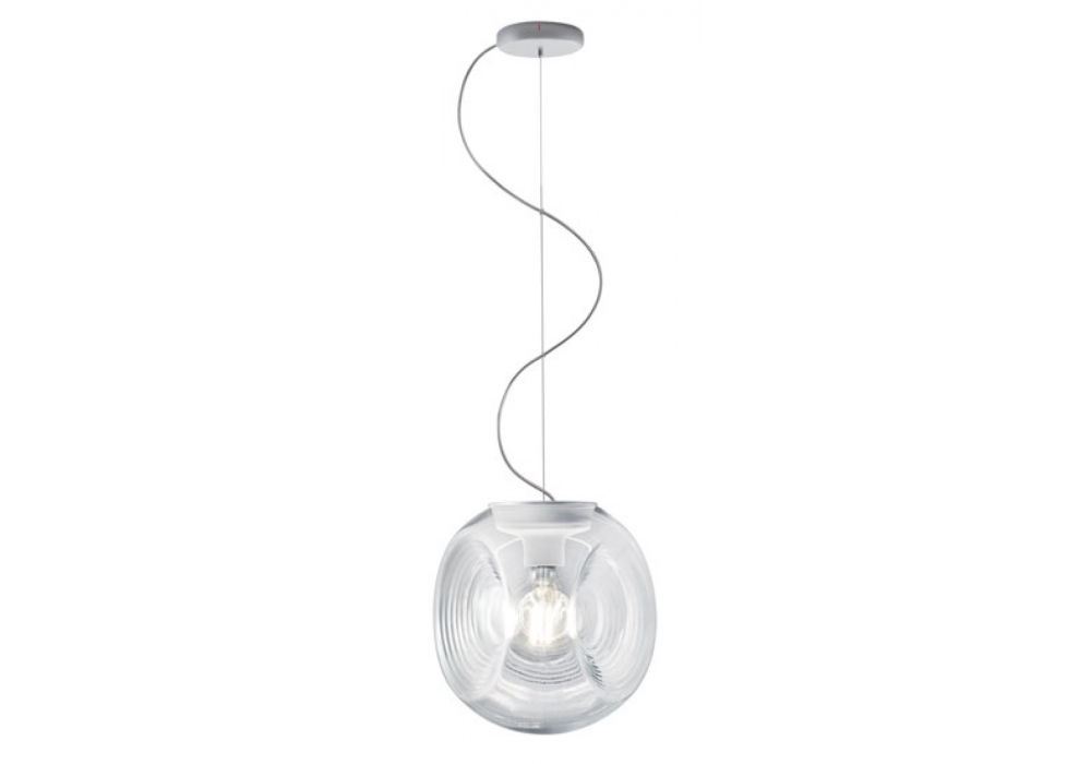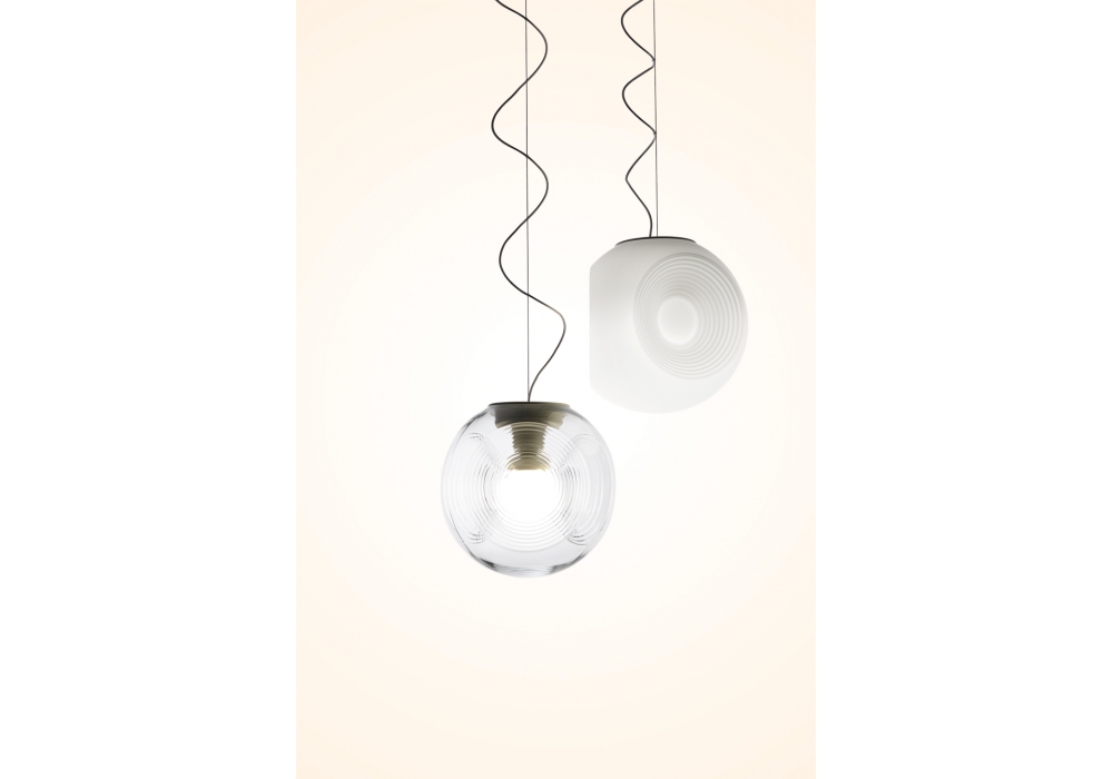 Eyes F34 firmata da Matali Crasset per Fabbian è una bellissima lampada a sospensione con diffusore in vetro soffiato trasparente o bianco. Struttura in metallo verniciato bianco. Indice di protezione IP 20.