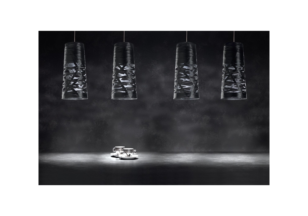 Tress firmata da Marc Sadler per Foscarini è una lampada a sospensione di forma cilindrica strutturata in materiale composito, fibra di vetro e metallo cromato. Il paralume è traforato con superficie irregolare e scherma una sorgente luminosa di tipo LED o alogena. Tress è disponibile in differenti finiture e dimensioni.