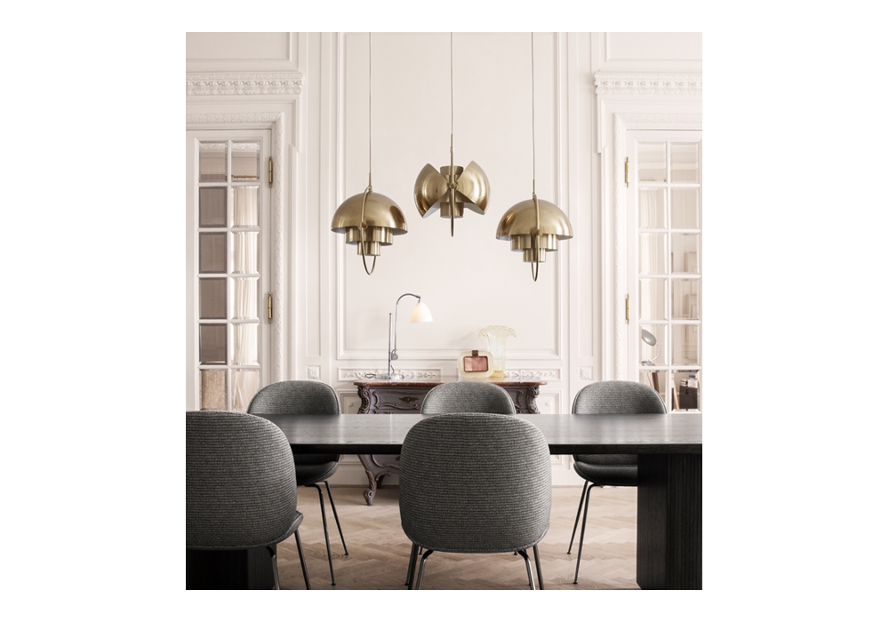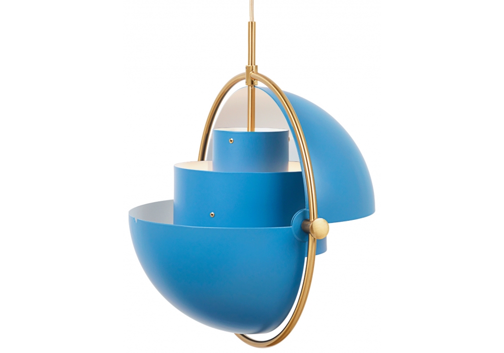 Multi-Lite firmata da Louis Weisdorf per Gubi è una lampada a sospensione in ottone o cromo, disponibile in diverse finiture. Multi-Line è una lampada versatile ed è possibile creare forme personalizzate ruotando le parti del paralume, ottenendo diverse direzioni della luce. Le versioni cromata e nera hanno il cavo nero, quelle in ottone e blu hanno il cavo dorato e la versione bianca ha il cavo bianco.