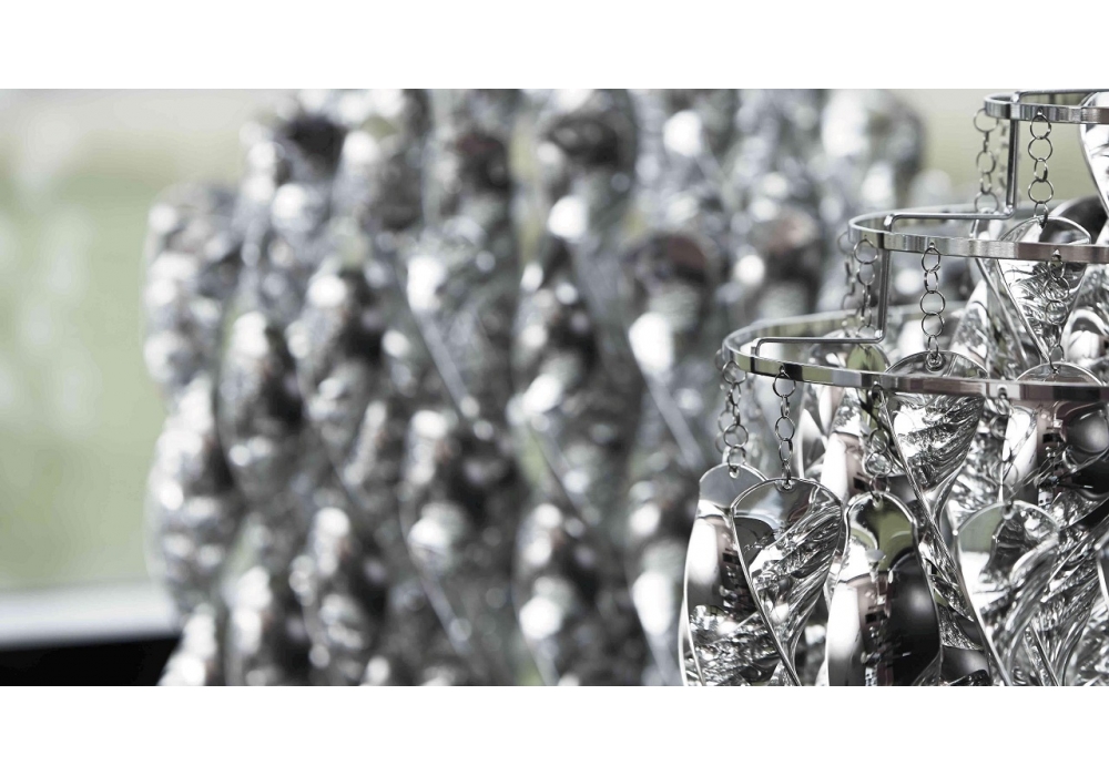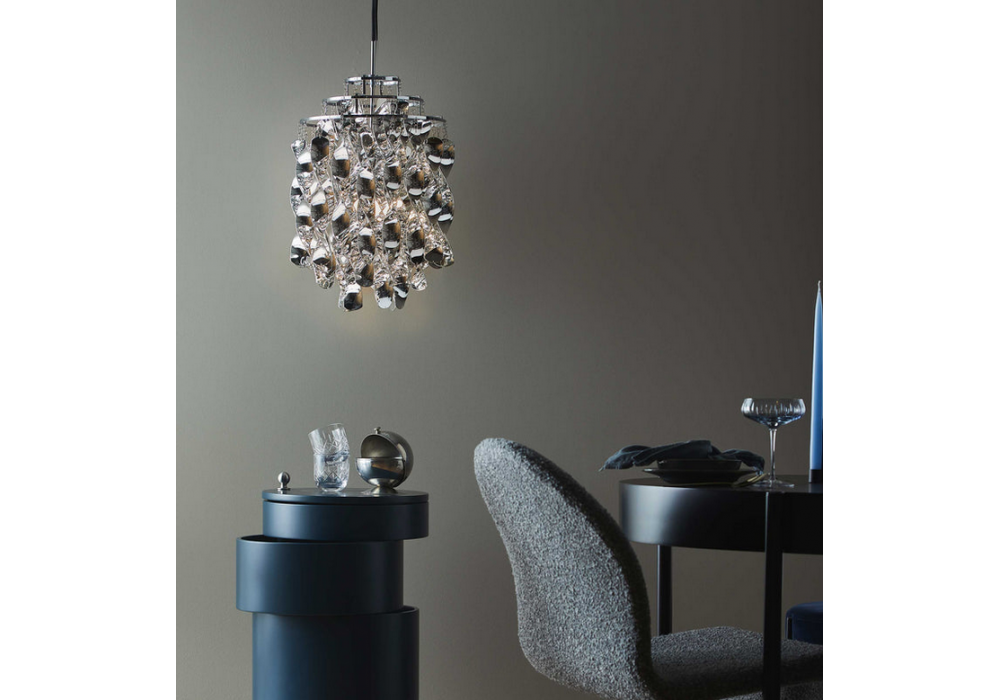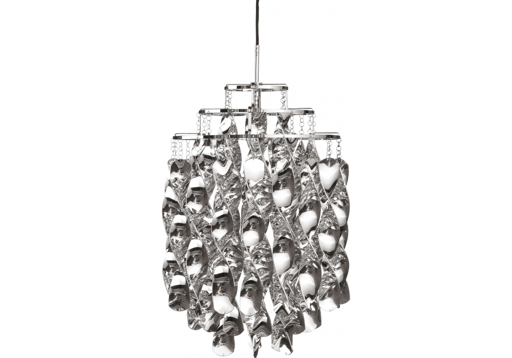 Spiral Mini firmata da Verner Panton per Verpan è una lampada a sospensione con spirali. Struttura metallica composta da 3 anelli. Le spirali sono realizzate in finitura argento e sono collegate alla struttura tramite piccoli anelli di metallo. Rosone cromato incluso.