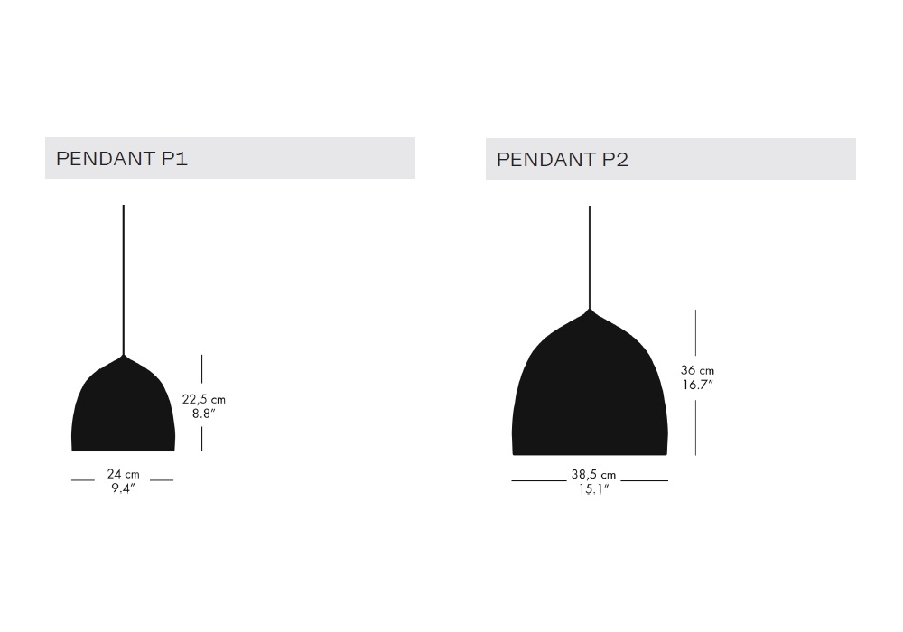 | Dimensioni | Ø 24 x H 22.5 cm; Ø 38.5 x H 36 cm. |