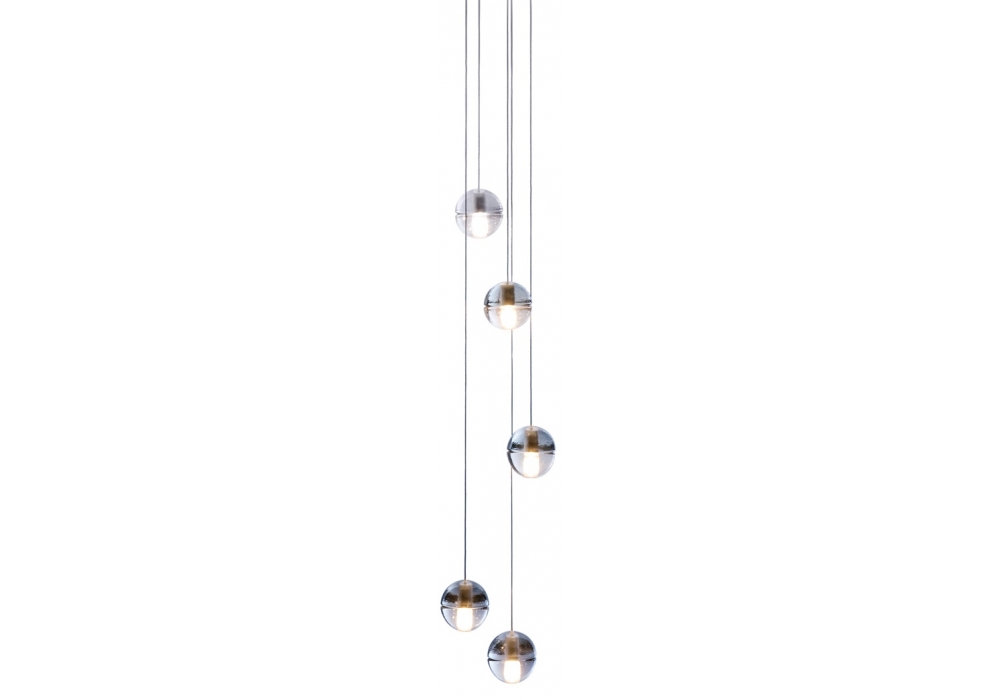 14.5 della serie 14 firmata da Omer Arbel per Bocci è una lampada a sospensione con 5 sfere sfere in vetro. Ogni sfera è realizzata in vetro borosilicato soffiato. All'interno è presente una cavità che ospita una lampada a led o allo xeno a basso voltaggio. Il vetro è disponibile nel colore trasparente, grigio o ambra.