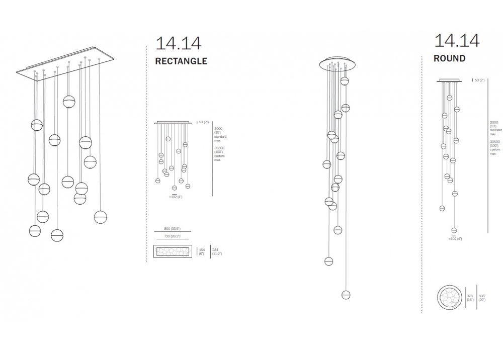14.14 della serie 14 firmata da Omer Arbel per Bocci è una lampada a sospensione con 14 sfere in vetro,disponibile in due configurazioni. Ogni sfera è realizzata in vetro borosilicato soffiato. All'interno è presente una cavità che ospita una lampada a led o allo xeno a basso voltaggio. Disponibile in due versioni e con diffusori in quattro finiture: trasparente, grigio o ambra.