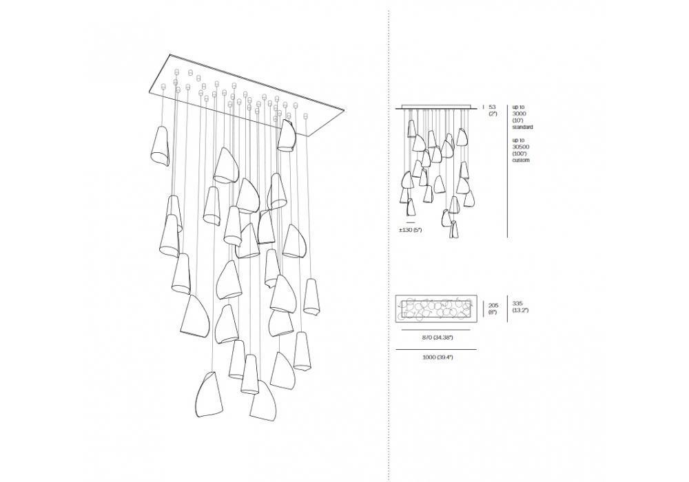 21.26 della serie 21 firmata da Omer Arbel per Bocci è una lampada a sospensione con ventisei pendenti. Ogni singolo pendente è realizzato con sottili fogli di porcellana che si avvolgono ad un diffusore di vetro borosilicato. Il risultato è un prodotto unico. Ogni pendente assume in un contesto più ampio una forma scultorea. Disponibile in due versioni Rectangle o Round.