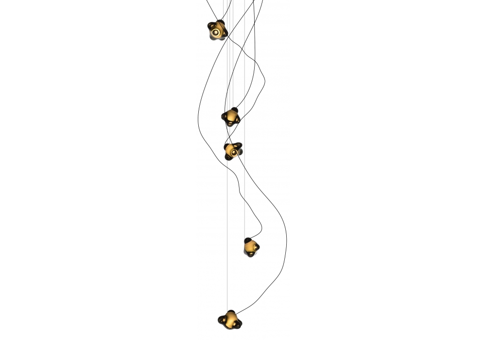 57.5 firmata da Omer Arbel per Bocci è una lampada a sospensione con cinque diffusori. La serie 57 è una collezione di lampade a sospensione in cui ogni pendente è il risultato di un'innovativa tecnica di lavorazione che rende il prodotto unico nei materiali e nella forma. Essa consiste nell'intrappolamento e inezione dell'aria all'interno dei componenti in vetro fuso che successivamente si uniscono tra di loro. Un connubio di innovazione ed artigianalità. Disponibile in due versioni e quattro differenti diffusori.