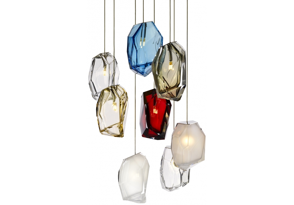 Cristal Rock firmata da Arik Levy per Lasvit è una bellissima lampada a sospensione realizzata in vetro disponibile in diverse finiture.