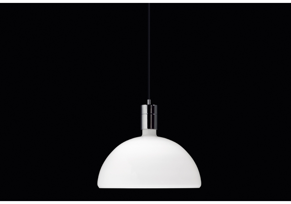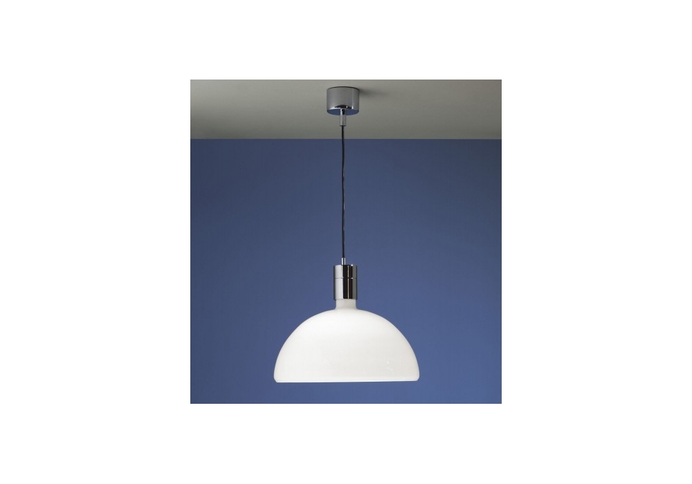 AM4C firmata da F.Albini, F.Helg, A.Piva, M.Albini per Nemo è una lampada a sospensione di forma circolare in vetro opalino bianco con particolari in metallo cromato. La sorgente luminosa adottata è con innesto E27 di tipo alogena/LED/Fluo AM4C è dotata di sistema blocca cavo per regolarne la lunghezza.