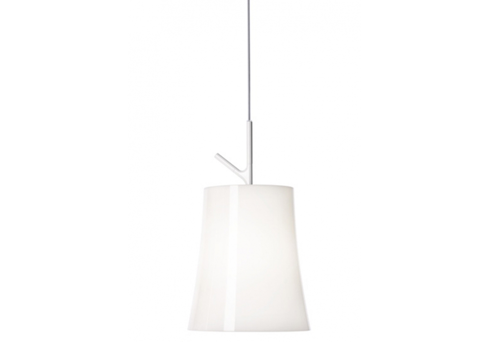 Birdie firmata da Ludovica e Roberto Palomba per Foscarini è una lampada a sospensione con struttura portante in metallo verniciato di colore bianco. Il paralume è strutturato in policarbonato di forma cilindrica ed alloggia una sorgente luminosa con innesto E27 di tipo LED retrofit o alogeno. Birdie è disponibile in differenti modelli e finiture.