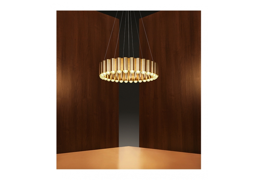 Carousel firmata e prodotta da Lee Broom è una lampada a sospensione di forma circolare composta da molteplici elementi cilindrici in acciaio. La sorgente luminosa adottata è di tipo LED dimmerabile. Carousel è disponibile in differenti finiture.
