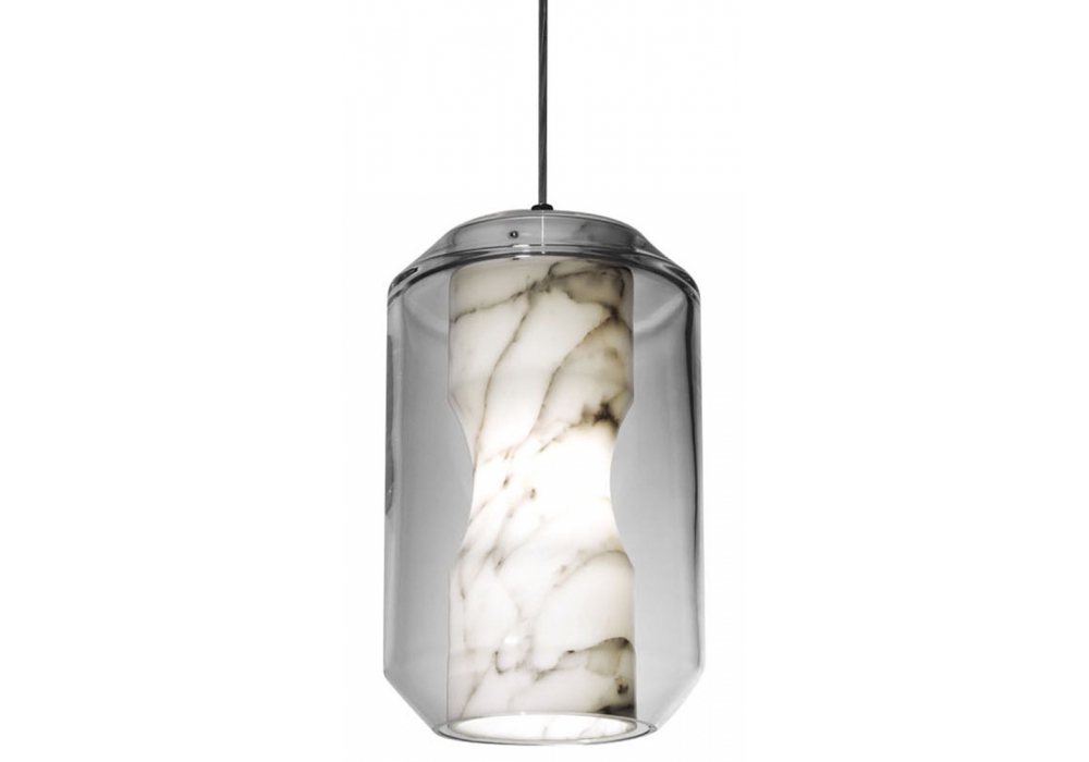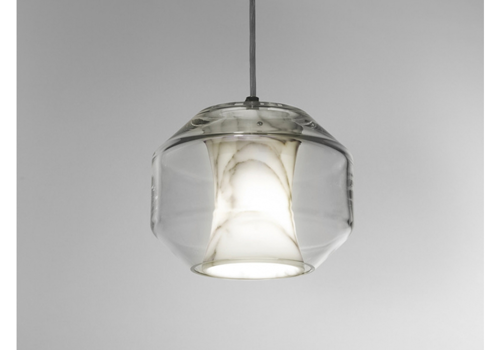 Chamber firmata da Lee Broom è una lampada a sospensione con un diffusore in marmo scultoreo di Carrara all'interno di un vaso di cristallo al piombo. Esprime le inaspettate qualità traslucide del marmo in una imponente lampada decorativa. Con la sua luminosità dolce e il downlight direzionale, Chamber è disponibile in due dimensioni e si presta ad essere appesa in cluster e singolarmente. Cavo di 300 cm. Rosone in metallo satinato bianco rotondo di 12 cm.