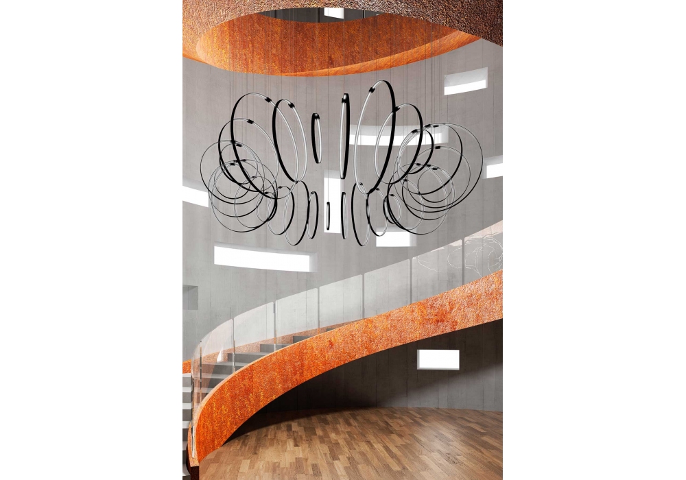 Rings Verticale firmata da Valerio Cometti – V12 Design per Zava è una lampada a sospensione realizzata in alluminio verniciato opaco o ottone. Ogni anello è indipendente ed è possibile creare composizioni di qualsiasi forma e dimensione.