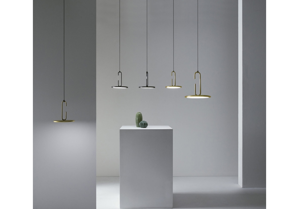 Clip Large firmata da Daniel Debiasi & Federico Sandri per Penta è una lampada a sospensione con struttura in metallo verniciato in differenti finiture. Il diffusore è di forma circolare ed alloggia una sorgente luminosa di tipo LED dimmerabile. Clip Large è disponibile in diverse finiture di struttura e rosone.