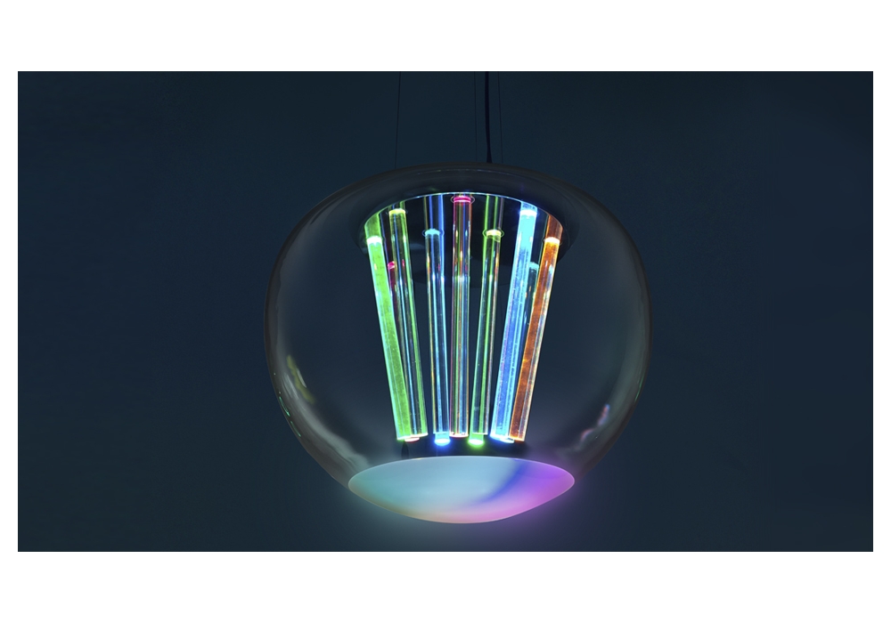 Spectral Light firmata da Philippe Rahm per Artemide è una lampada a sospensione con struttura portante in metallo cromato e diffusore sferico in vetro soffiato trasparente. La sorgente luminosa adottata è di tipo LED con sistema di dimmerabilità Push.