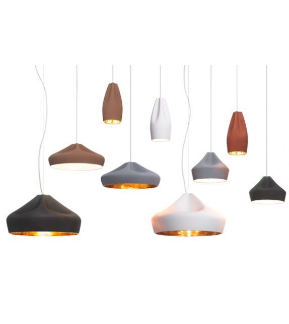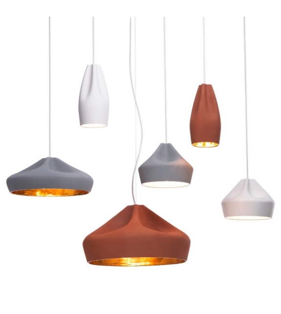 Pleat Box 36 firmata da Xavier Mañosa & Mashallah per Marset è una lampada a sospensione realizzata in ceramica in diverse finiture, parte interna in smalto bianco brillante o oro.