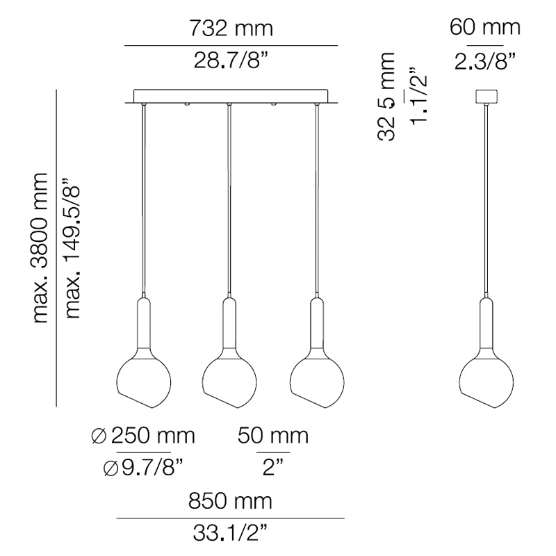| Dimensioni | Ø 25 x H 55 cm; 85 x 25 x H 55 cm; Ø 40 x H 380 cm. |