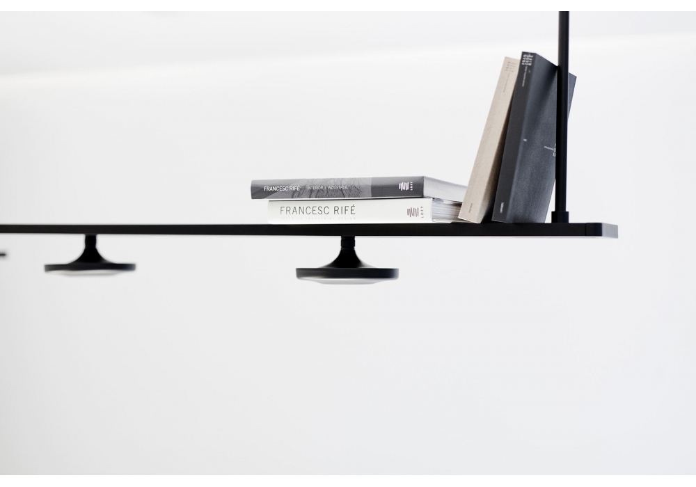 Button firmata da Francesc Rifé per Estiluz è una lampada a sospensione a binario con struttura portante quadrangolare in alluminio verniciato. I diffusori sono di forma circolare in alluminio ed adottano una sorgente luminosa di tipo LED con sensore touch dimmer. Buttom è disponibile in differenti finiture e modelli.