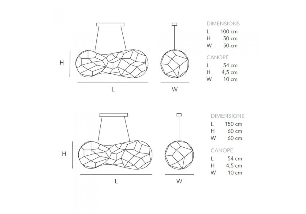 | Dimensioni | L 100 x W 50 x H 50 cm; L 150 x W 60 x H 60 cm. |