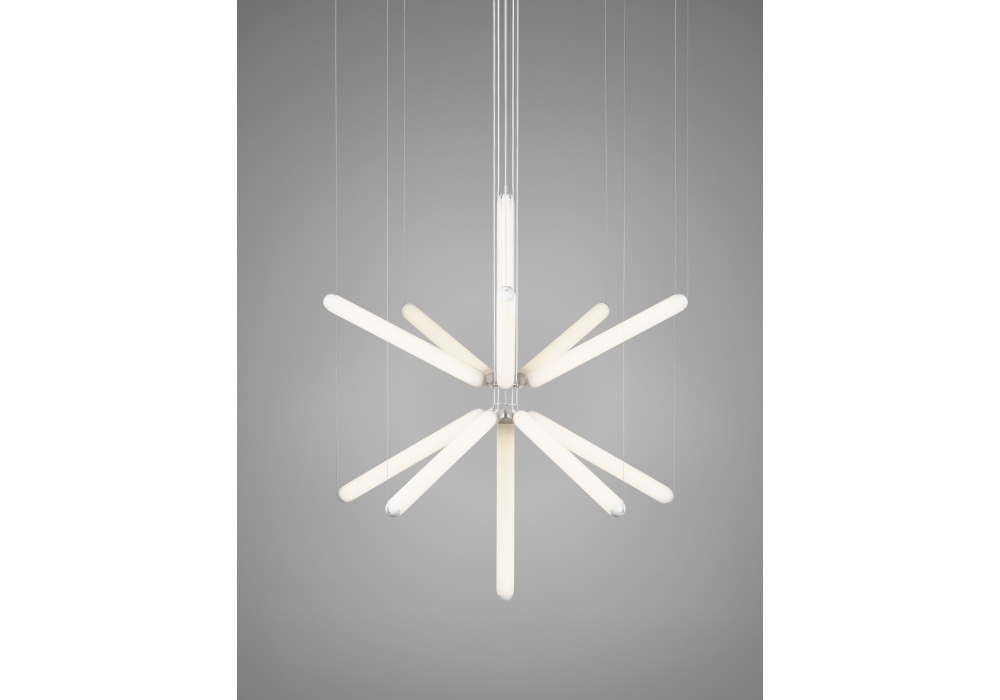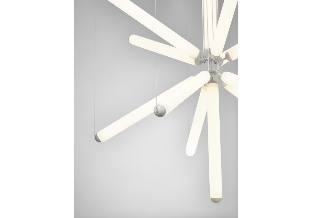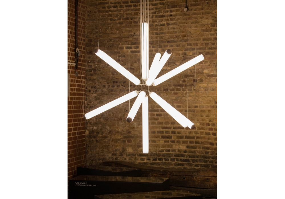 Puro Sparkle firmata da Lucie Koldová per Brokis è una lampada a sospensione in vetro e metallo verniciato a polvere. I molteplici tubi si irradiano verso l'esterno in una luce diffusa ed adotta una sorgente luminosa di tipo LED dimmerabile in differenti versioni. Puro Sparkle è disponibile in diverse dimensioni e finiture.